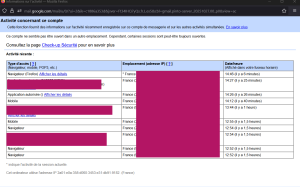 - Regardez la liste : type d’accès (Web, mobile, IMAP), adresse IP, lieu, heure.